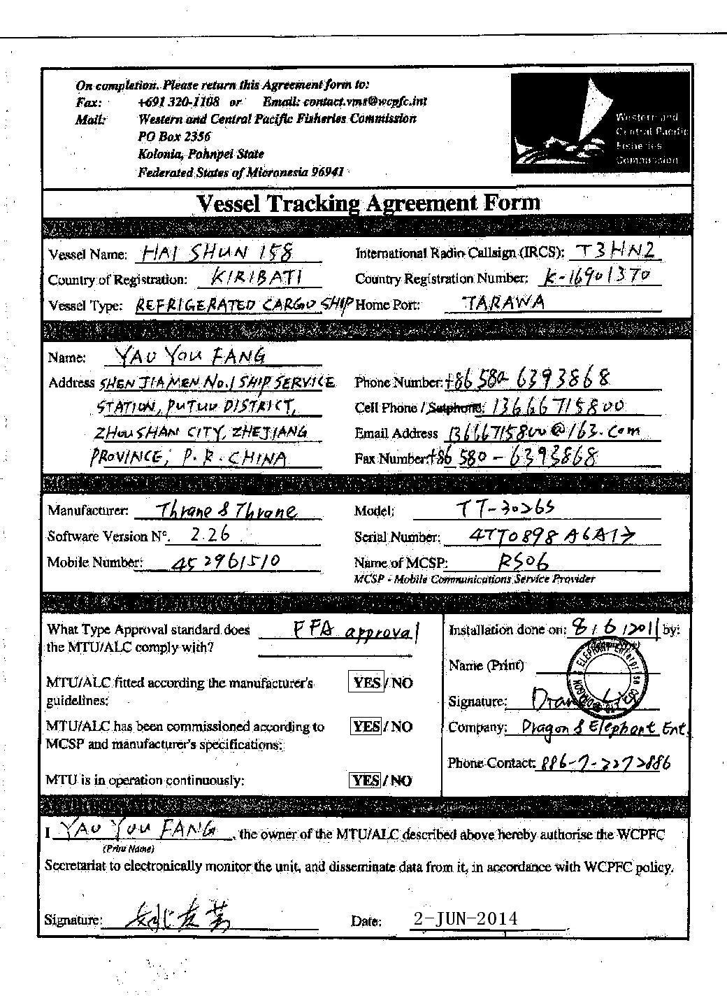 WCPFC #9942 | T3HN2 | Kiribati |